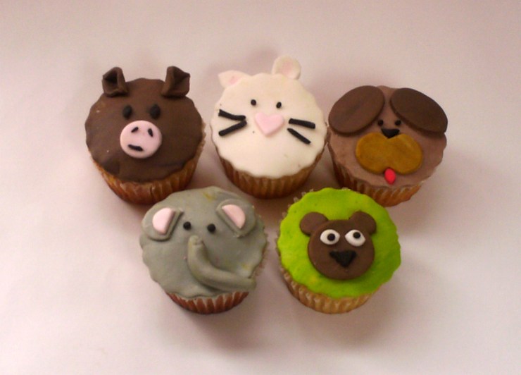 Hoy les comparto imágenes de los cupcakes de animales que hice para el cumpleaños del esposo de Diana, la caja incluye 14 animalitos, algunos de los que ya conocen y unos modelos nuevos de caballo, conejo, elefante, oso y perro.
