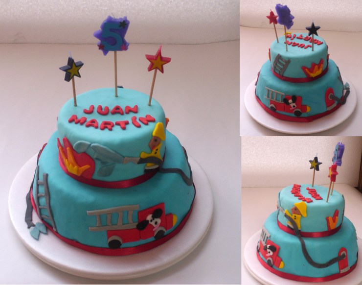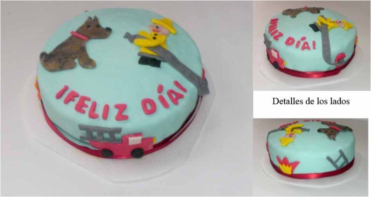 Después de un arduo día de trabajo, ayer salí a las 11 PM de la cocina, ya todos los pedidos quedaron entregados, excepto una torta que recogen mañana. Hoy comparto con ustedes la torta de bomberos que hice por encargo de Patricia -el perro con look de pastor alemán fue una petición suya- y la otra de princesa que hice para Florecita, para el cumple de su cuñadita.