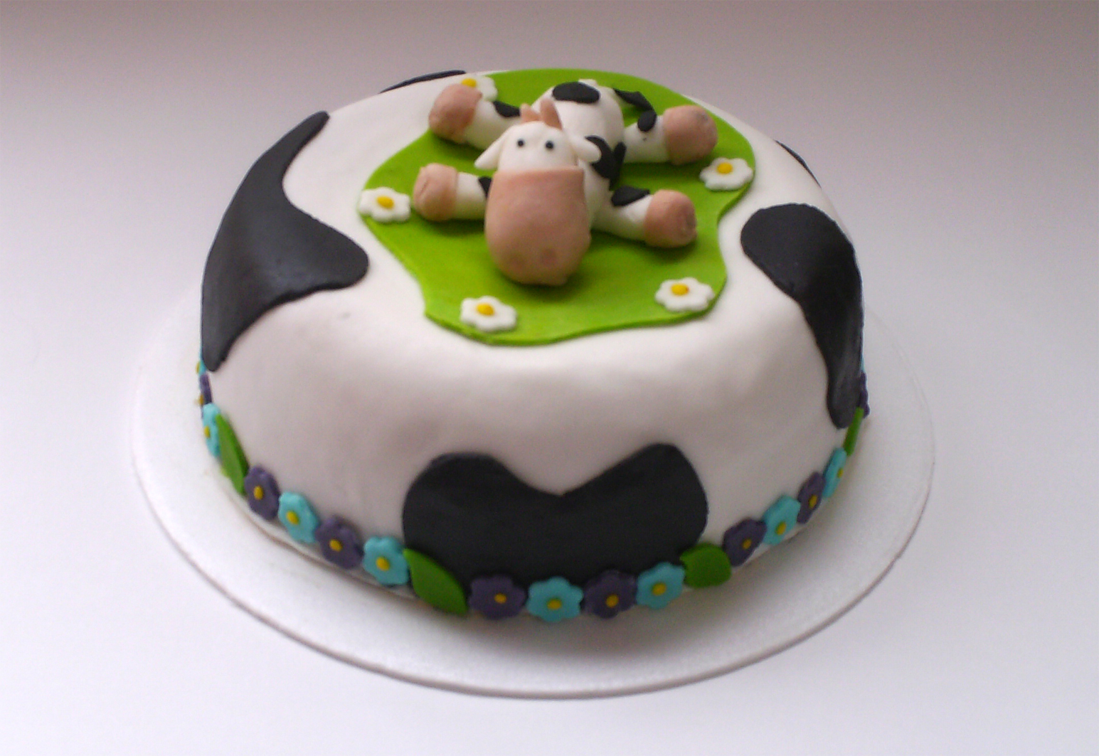 Ayer fue un día muy agitado, terminando pedidos para entregar hoy y pendiente de la grabación de City TV para la sección Famoso por su negocio. Sweet Mafer estará en Arriba Bogotá el próximo miércoles entre las 9 y 9:15 AM. Hoy les comparto una foto de la torta de vaca con manchas que me encargó mi amiga Angelita para su prima, quien es apellido Vaca y a quien le encantan las vacas.