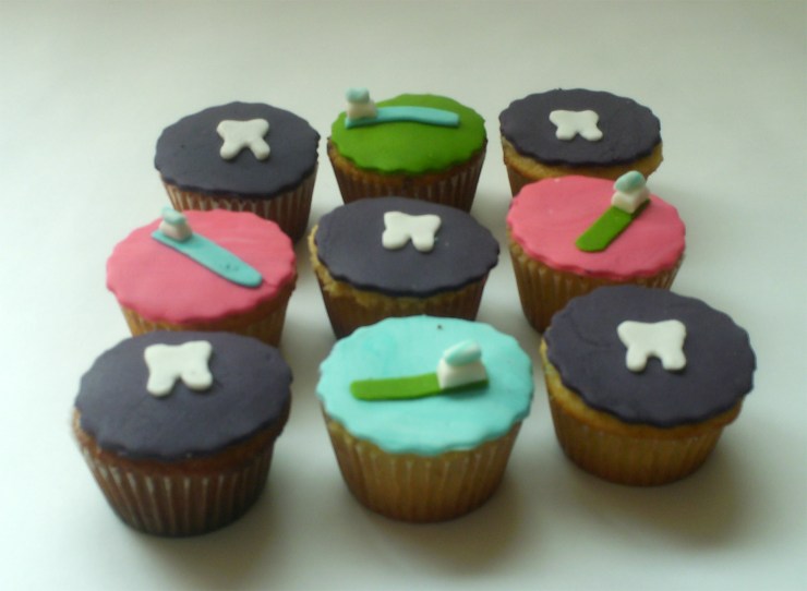 Para hoy, hice cupcakes de muelas y cepillos de dientes para el día del odontólogo, un encargo de Carmen Elena para sus colegas. También entregué unas tortas para regalos corporativos de la empresa de mi amiga Martha.
