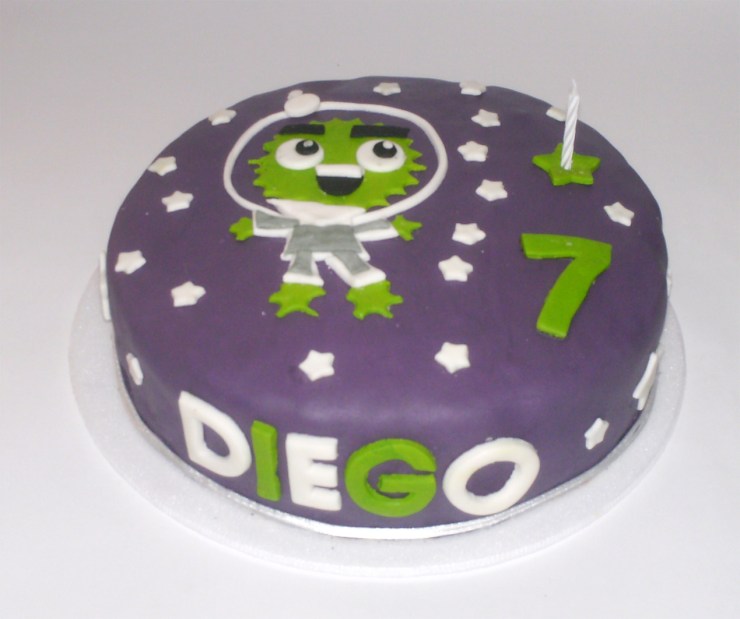 Hoy estuve trabajando en la torta de cumpleaños de Diego, el hijo de Cabeto. Una torta de 1 lb, de naranja, decorada en pastillaje, para 30 persdonas. El diseño está basado en las invitaciones de la fiesta. Debajo de la foto de la torta les comparto la imagen de la invitación.