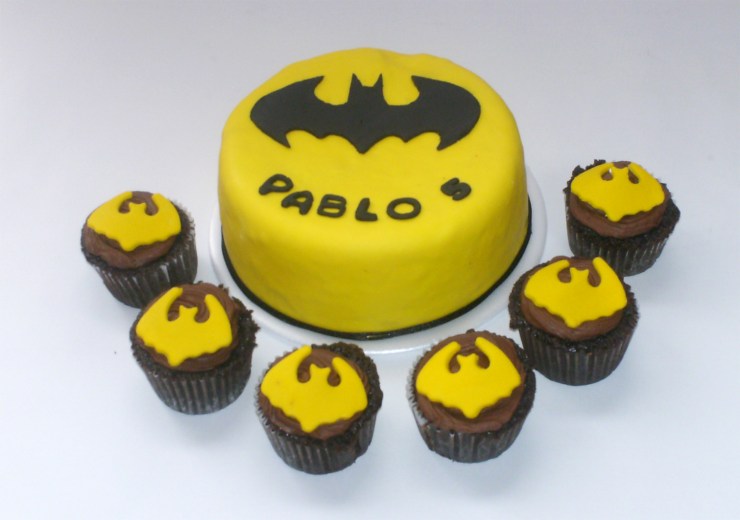 Hoy les comparto la foto de la torta y cupcakes a juego de Batman para el cumpleaños de Pablo, el hijo de Rocío y Ricardo. La torta es de vainilla de 1/3 de libra y los cupcakes de chocolate.