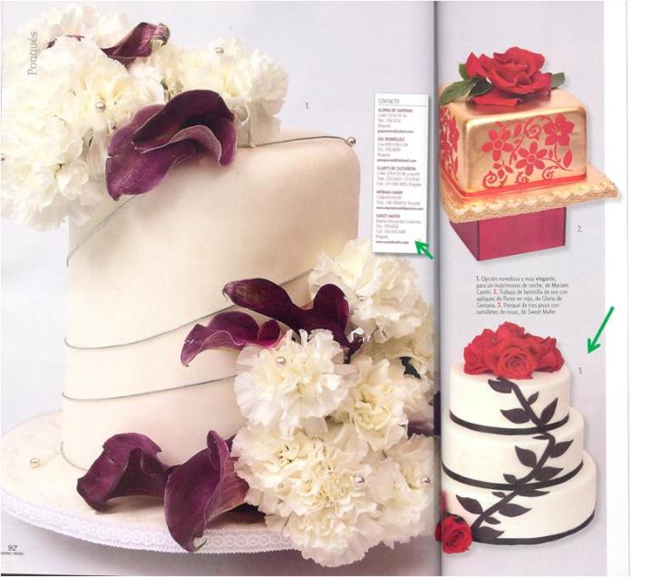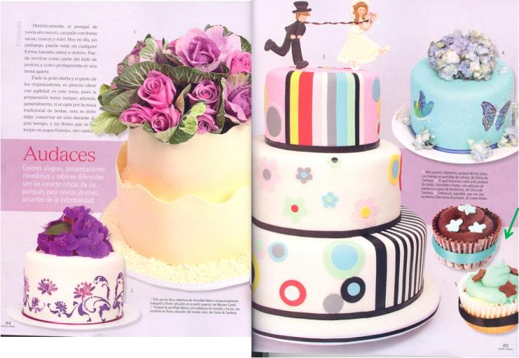 Estoy muy orgullosa de nuestra nueva aparición en la revista Novias y Bodas que empezó a circular hoy. En la sección Ponqués aparecen varias creaciones de Sweet Mafer, esta vez no solo cupcakes sino tortas y un set de torta+cupcakes. De nuevo gracias a Eliana, a María Camila y a Juan Claudio. Los invito a ver las páginas de la revista, mis tortas están señaladas con una flecha verde.