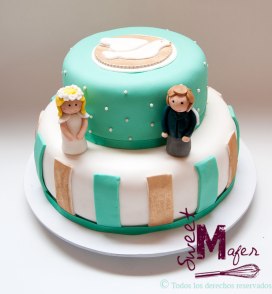 Edwin me encargó una torta marmolada para 30 personas, 30 galletas decoradas a juego y otras galletitas para la mesa de dulces de la celebración de la primera comunión de su hijita. ¡Les gustó mucho!