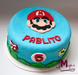 Pablito cumplió años durante la cuarentena, y Adriana, su mamá, le organizó una pequeña celebración con sus vecinos, me encargó esta torta de chocolate para 15 personas decorada con Mario Bross.