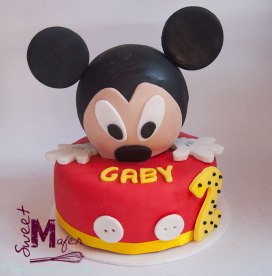 Pilar me encargó esta torta de 10 porciones, de chocolate con capa de mora, decorada con Mickey, para el cumpleaños de su sobrinita Gabriela. ¡Les gustó mucho!