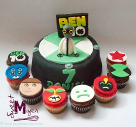 Torta de chocolate de 25 porciones y cupcakes a juego para el cumpleaños de Daniel, encargo de su papá, Armando quien se fue muy contento con el resultado.