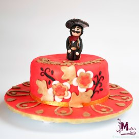 A la mamá de Tania le encantan los mariachis y para su cumple, me encargó una torta de almendra y naranja de 10 porciones, decorada como un sombrero de mariachi y con un mariachi encima. ¡Les gustó mucho!