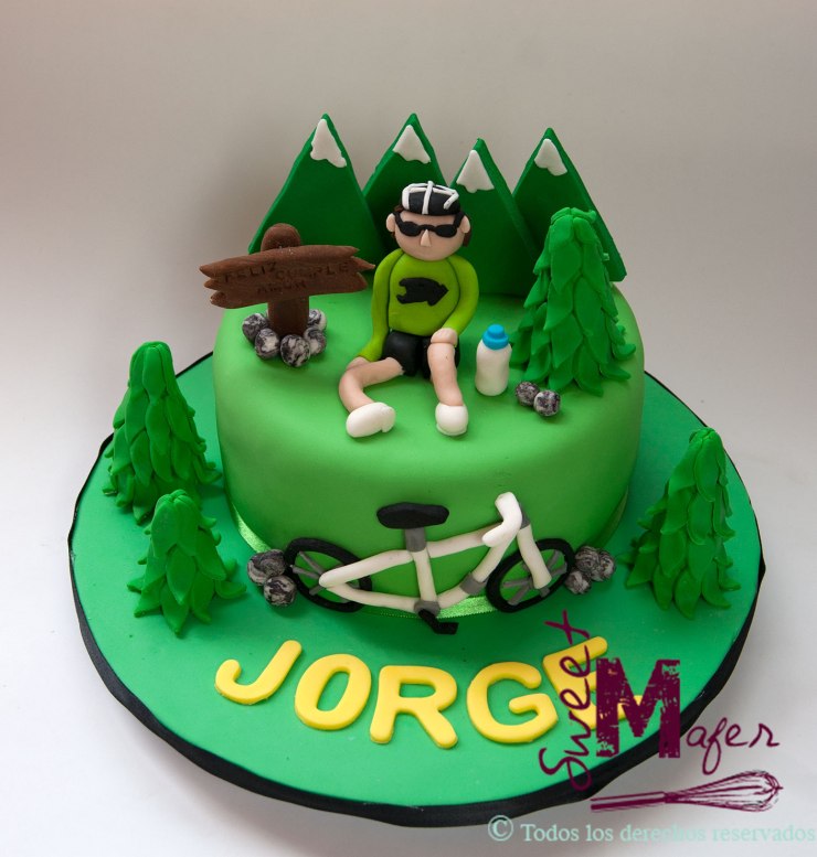 Torta ciclismo con montañas